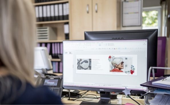 Persönliche Bilder und liebevoll ausgewählte Worte der Familie oder Angehörigen halten wir in unseren Entwürfen des Trauerdrucks gerne für Sie fest. Wir bieten Ihnen unsere Unterstützung in Form von Textsammlungen an, wenn Ihnen gerade in dieser schweren Zeit die Worte fehlen. Gerne lassen wir unsere Eindrücke aus dem persönlich geführten Gespräch über die Lebensgeschichte des Verstorbenen in Worten in den Trauerdruck einfließen.